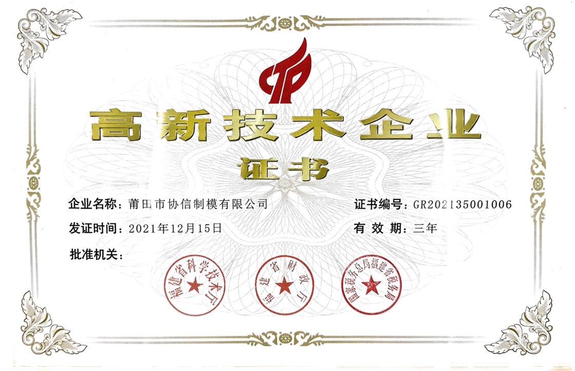 公司信譽度良好,2014年開始至今,連續(xù)多年獲得“納稅大戶”稱號。公司的管理和技術(shù)力量雄厚,榮獲了“福建省科技小巨人企業(yè)”、“科技型中小企業(yè)”、“市級企業(yè)技術(shù)中心”等稱號。2021年獲得“國家高新技術(shù)企業(yè)”認(rèn)定,通過GB/T29490-2013《知識產(chǎn)權(quán)管理體系認(rèn)證》。